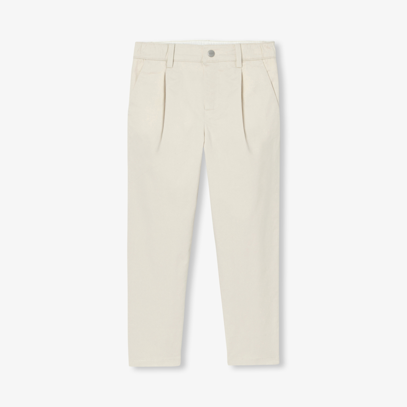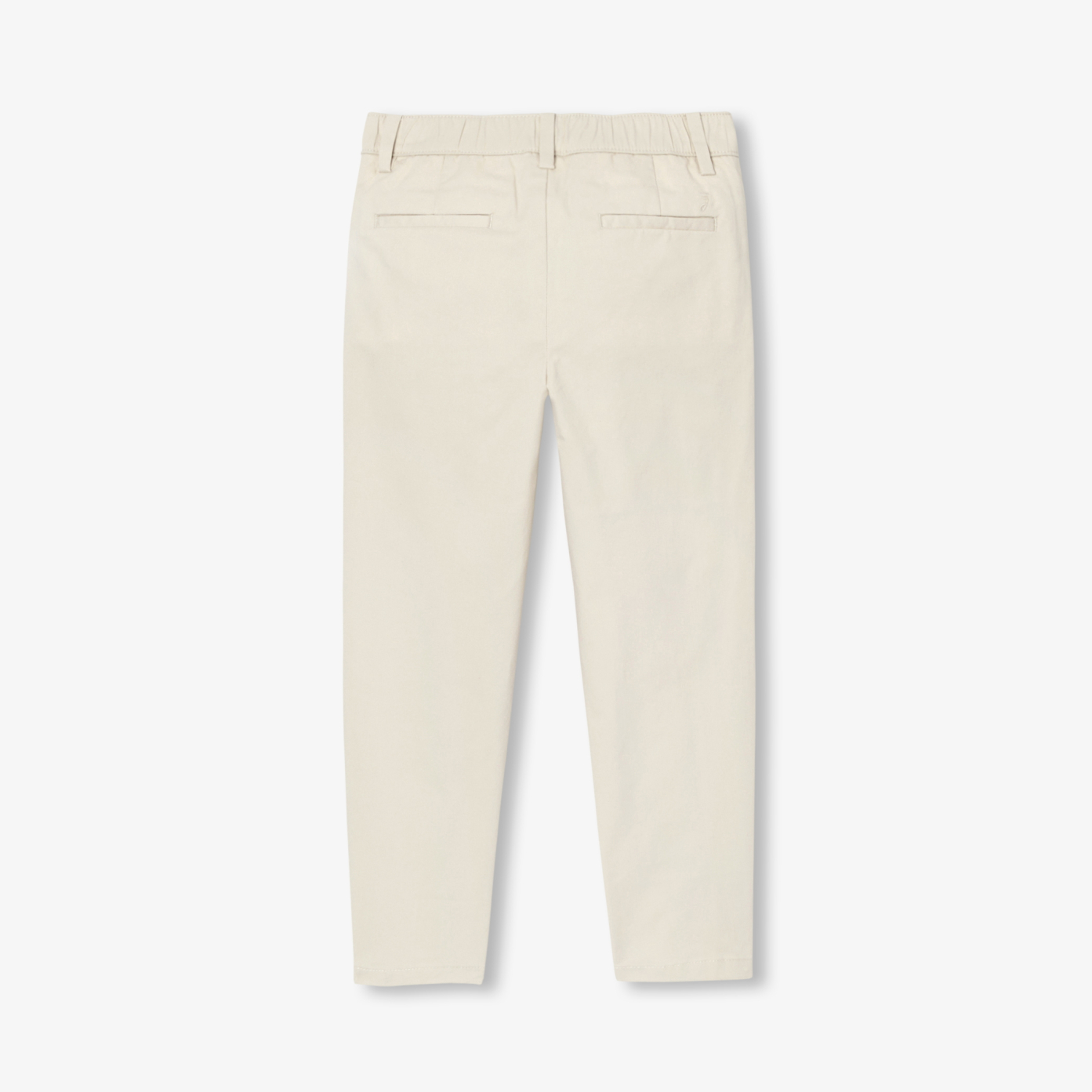 A casual-chic alternative to jeans, these boy trousers take on the codes of casual chic with their natural colours and minimalist cut. Worn with a shirt and blazer to create a formal look, they can easily be aired with a t-shirt, cardigan and trainers for a preppy chic look.- Boy trousers in organic cotton twill- Peach skin effect fabric- Italian pockets on front and welt pockets on back- Zipped and buttoned opening- Beautiful interior finishing- Waist adjustable from inside.