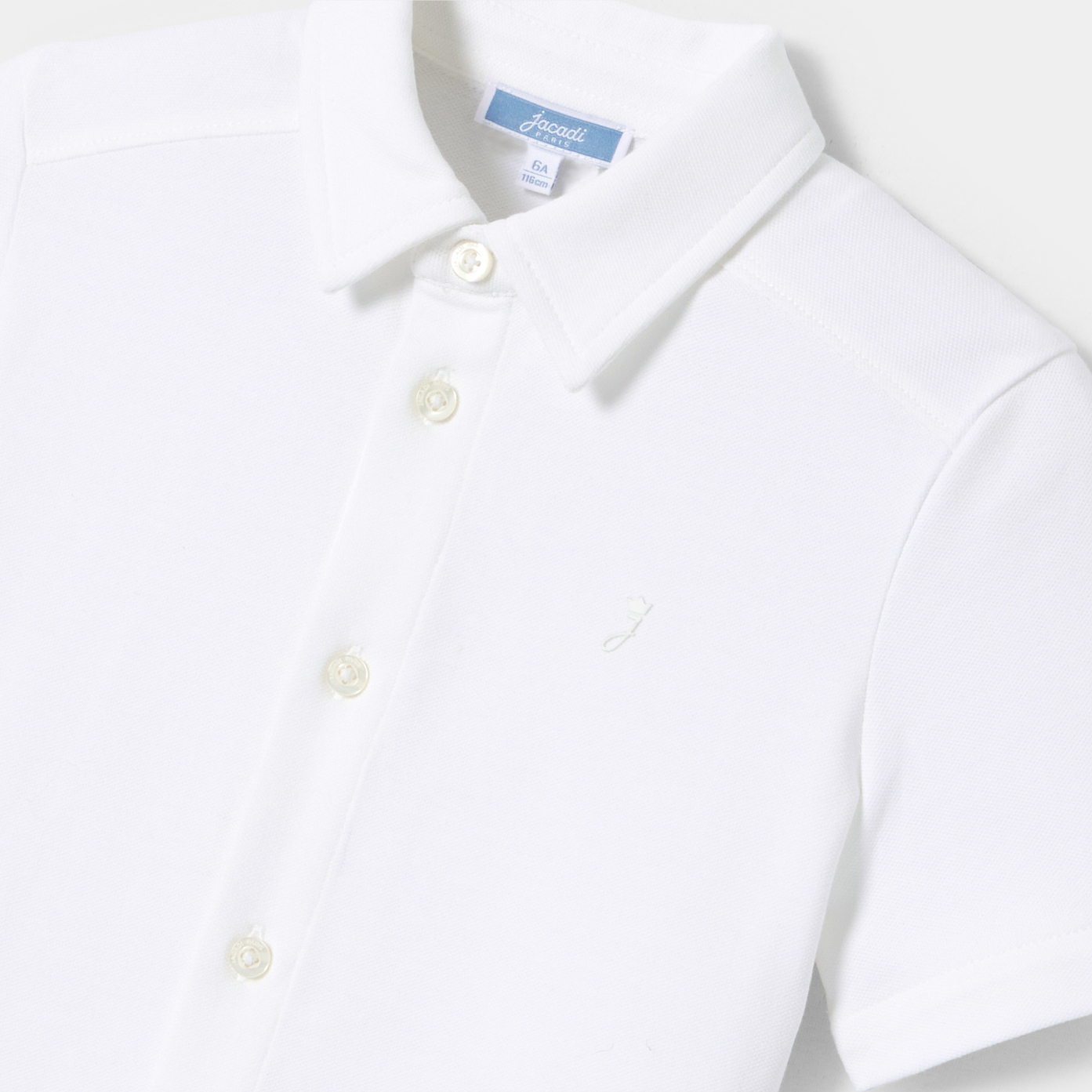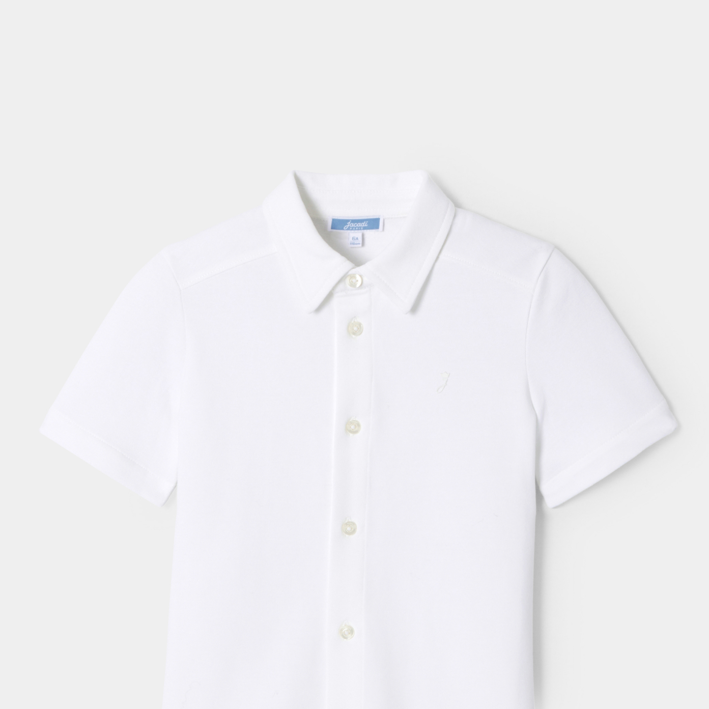 Chic and easygoing, this boy shirt opts for a refined look. Designed for summer ceremony, cotton sateen Bermuda shorts and moccasins elegantly complement this model, perfect for celebrating special occasions.- Organic cotton boy shirt- Short sleeves- Buttoned opening- J embroidered on chest