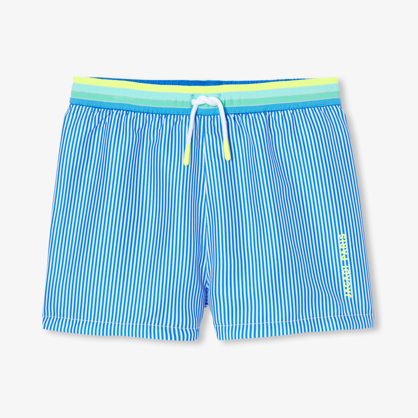 Fine stripes and a neon waistband energise these boy swim shorts. A summer must-have, these shorts with elasticated waistband and integrated briefs are perfect for vacation packing.- Swim shorts in striped recycled polyester- Elasticated striped waistband- Drawstrings- Integrated non-removable briefs