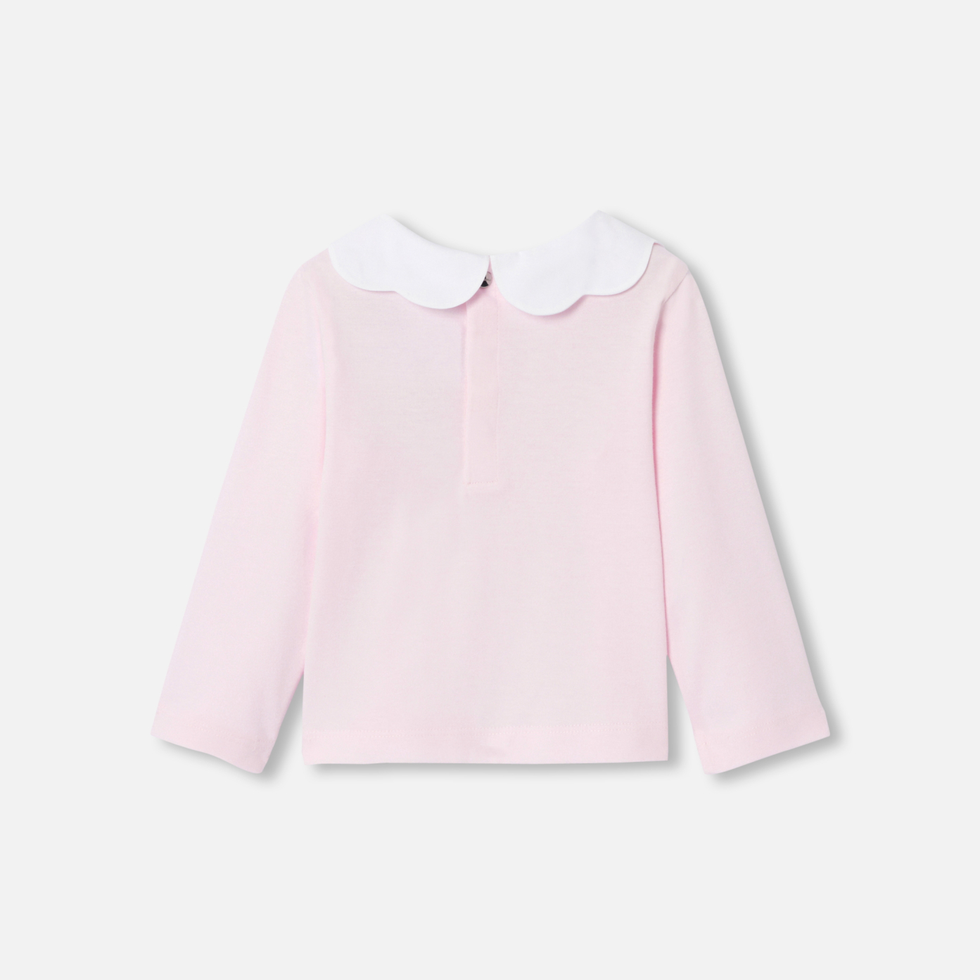 An essential for your back-to-school wardrobe, this baby girl long-sleeved t-shirt features a colourful pattern. Made from soft, cosy organic cotton, it goes equally well with shorts or trousers for school or holidays.- Organic cotton- Round neck- Printed front- Press stud opening on back