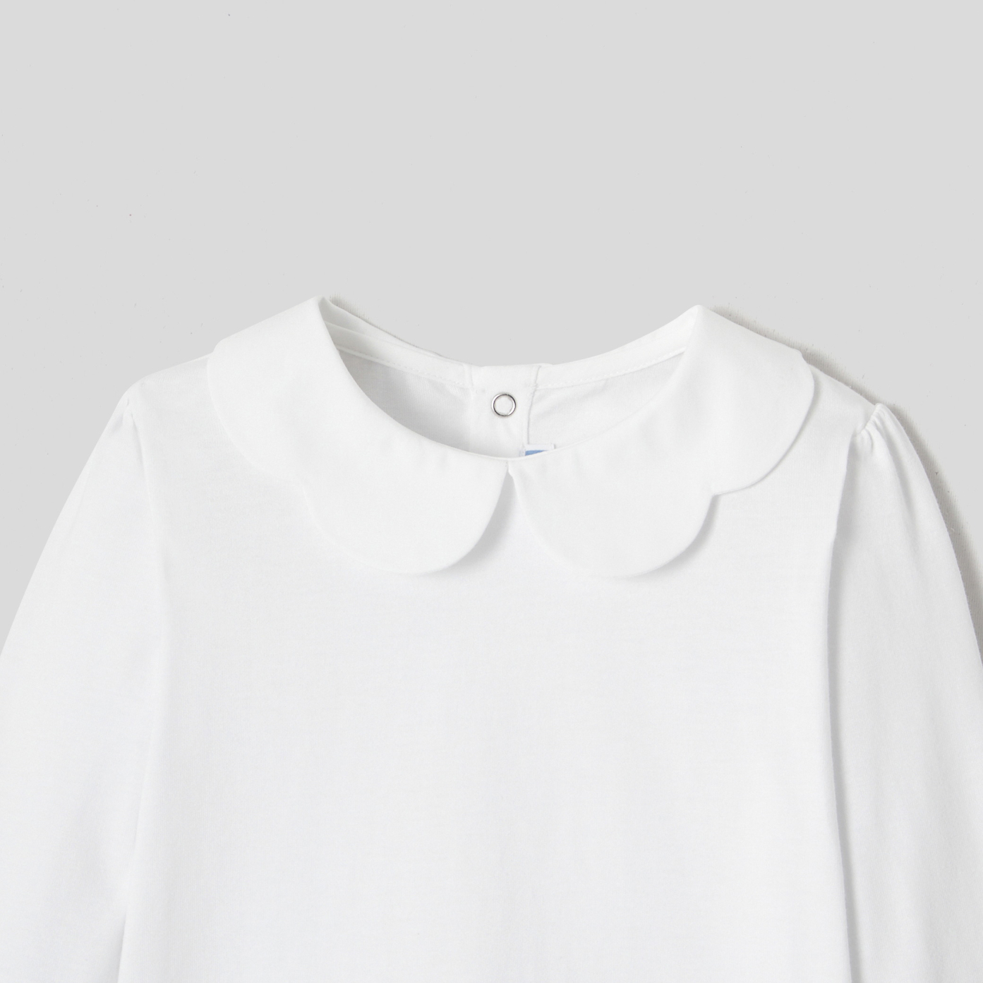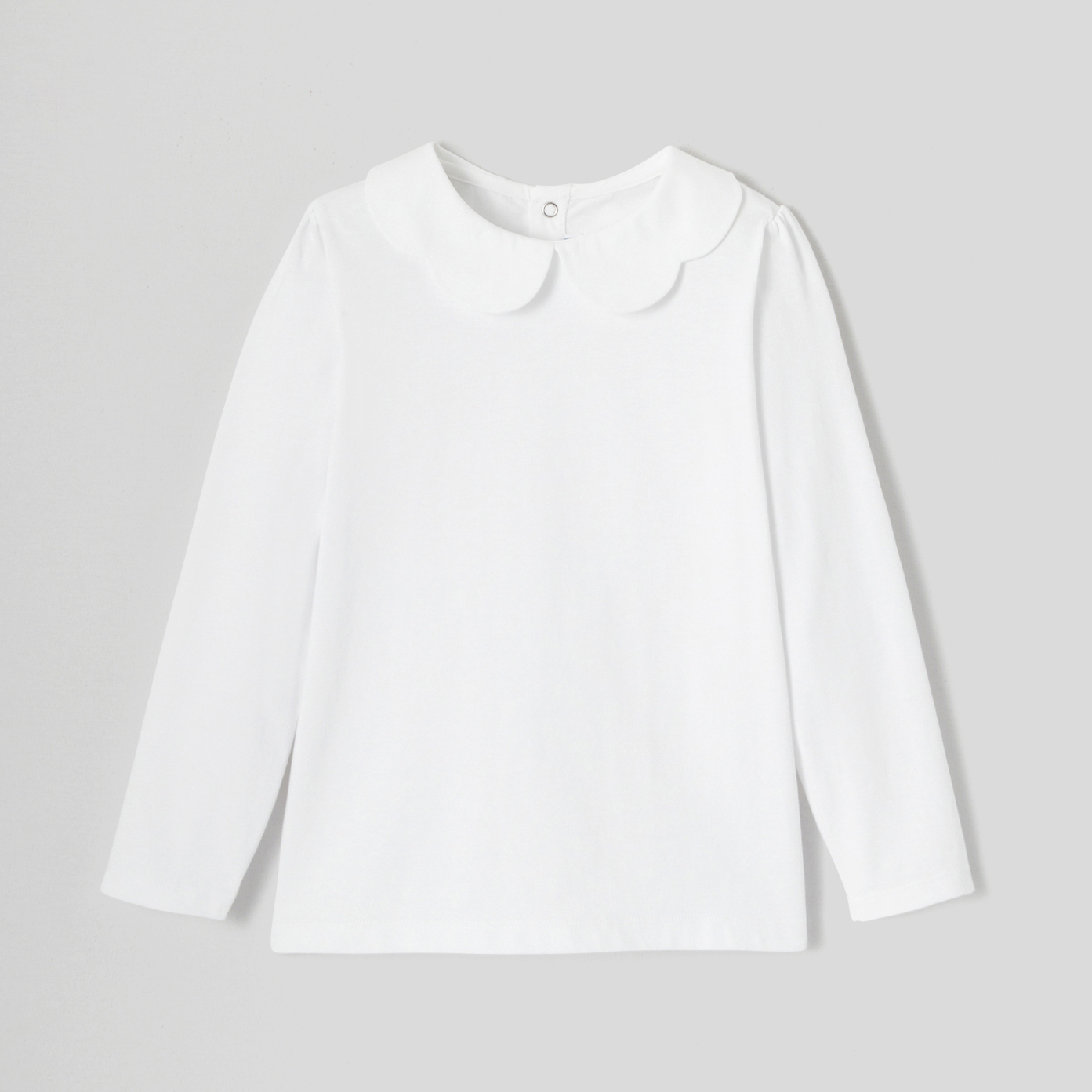 Chic and easy-going, this girl t-shirt features a scalloped collar. Made from organic cotton, it fastens with snaps on the back. Ideal for the start of the season, it will easily match a skirt or flare trousers. - Girl long-sleeved T-shirt in organic cotton jersey - Poplin scalloped collar - Gathers on shoulders - Press stud opening on back