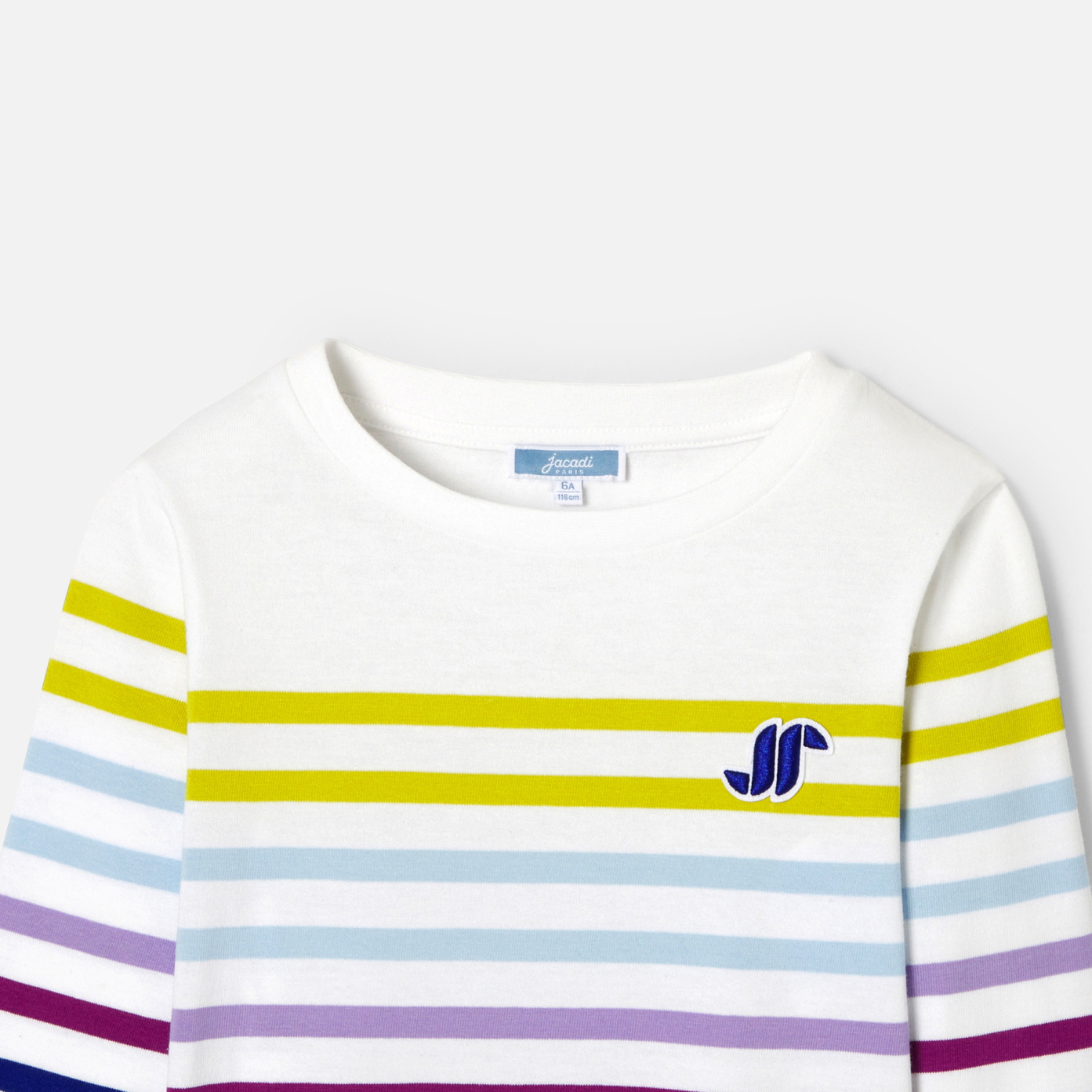 Emblematic of the Jacadi wardrobe, this boy sailor tee comes in a multicolour version for a contemporary look. Made from soft, lightweight organic cotton, this piece is perfect for spring, and can be teamed with rolled-up twill trousers and trainers. - Boy organic cotton sailor tee - Multicolored stripes - JP badge embroidered on chest