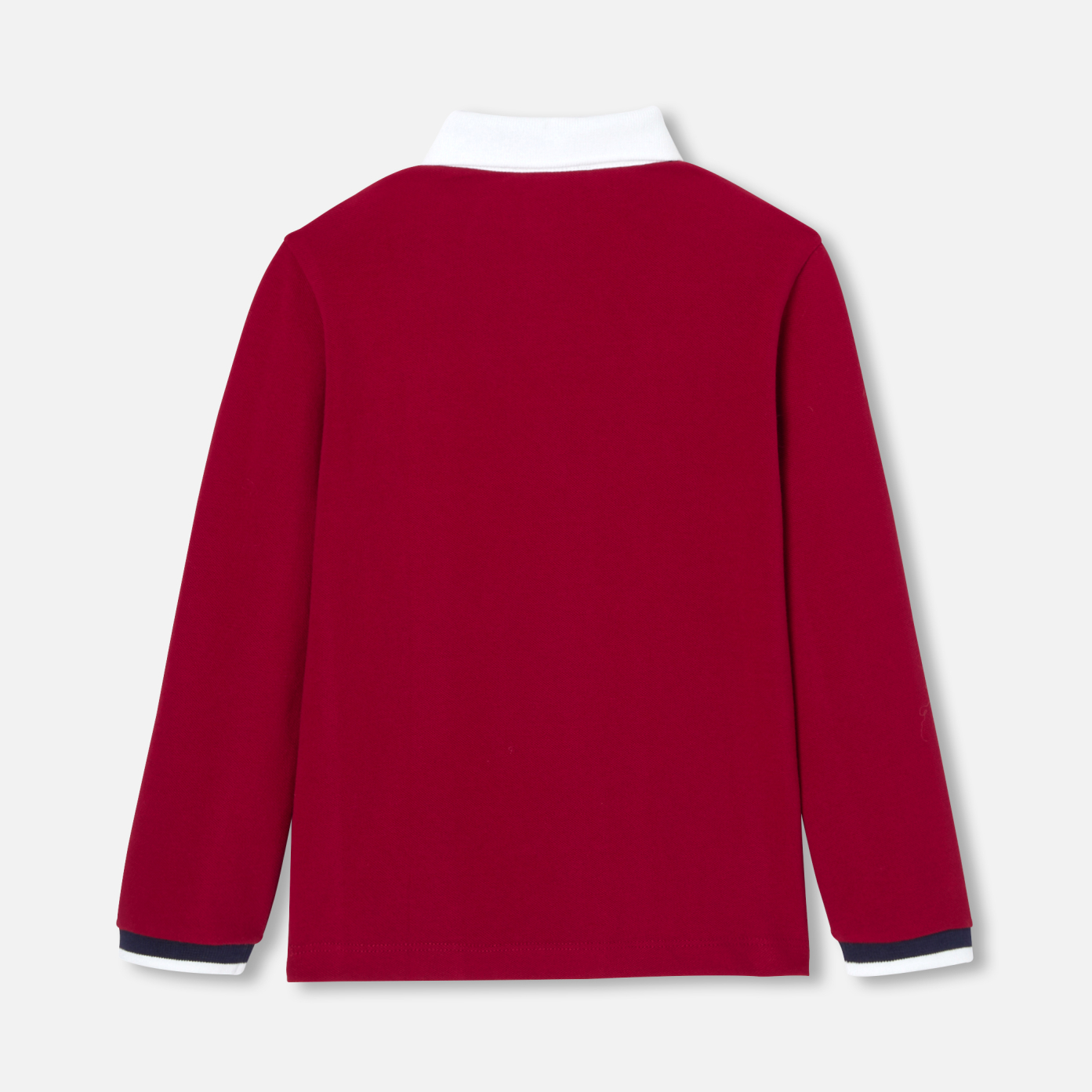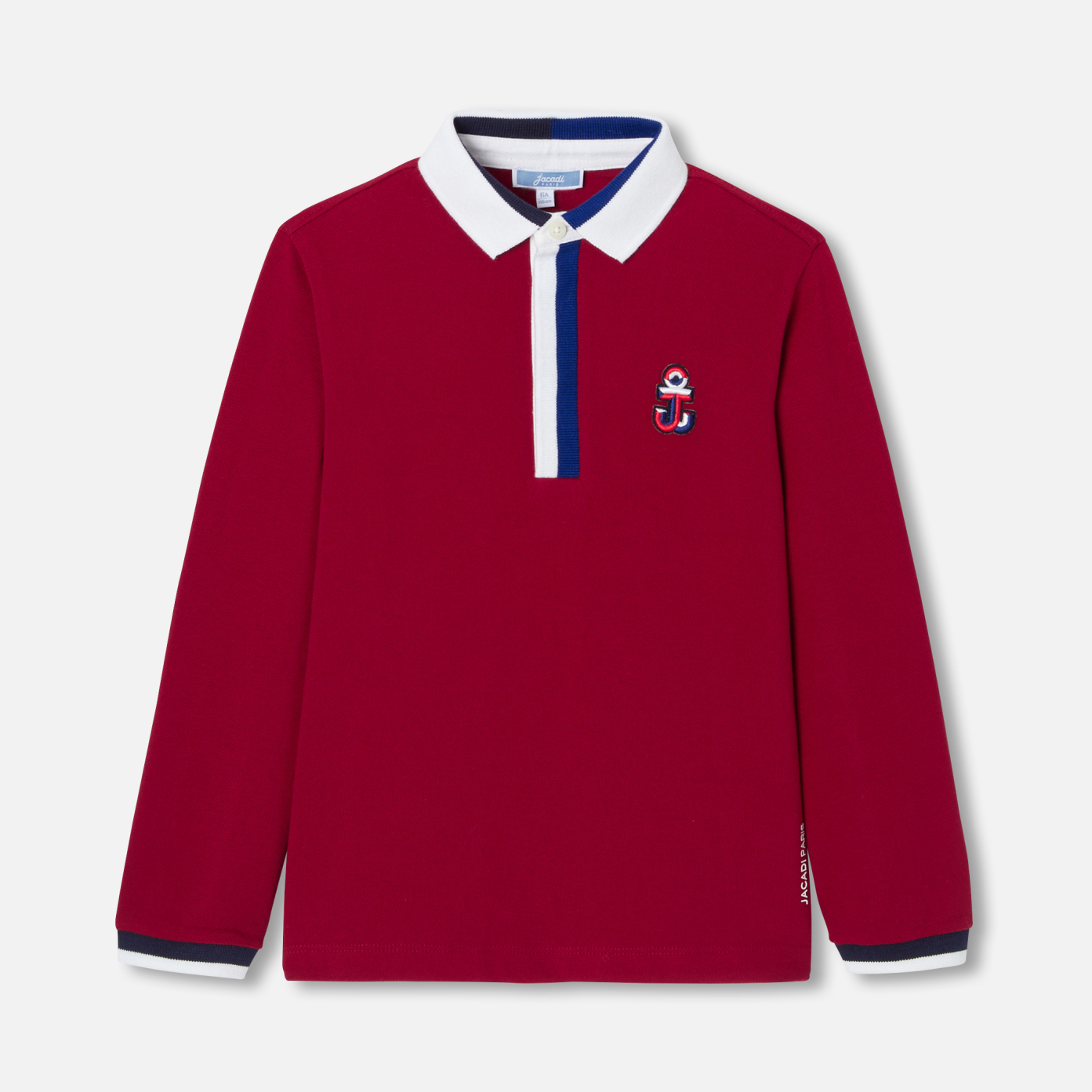 Made for todays boys, this long-sleeved cotton piqué polo is chic and contemporary. Available in an elegant colour, the contrasting collar and cuffs add a dynamic touch to this wardrobe essential, which can be worn with velvet carrot trousers and a parka in autumn.- Organic cotton piqué- Striped ribbed collar and cuffs- Oxford button placket- Embroidered badge on chest