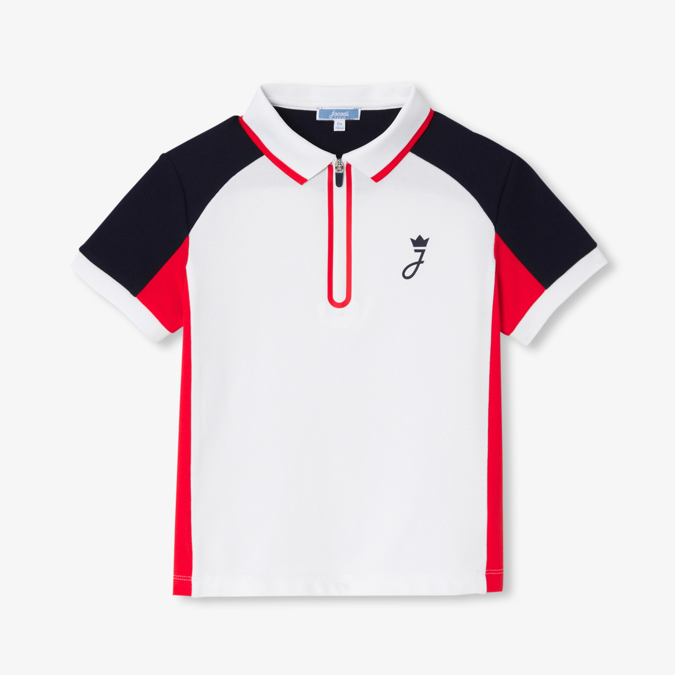 This summer, this boy polo opts for a contemporary colourblock look. On the sports field and for everyday wear, contrasting inserts, a ribbed collar and a framed zip modernise this flowing model in cotton piqué with added elastane, to be worn with shorts or joggers.- Boy polo shirt in flowing organic cotton piqué- Ribbed collar and cuffs- Contrasting inserts- Framis zip opening