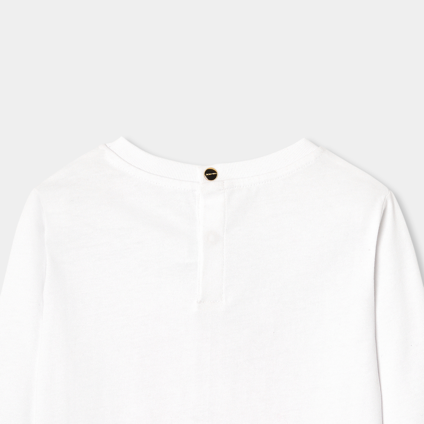 Every season, the classic girl long-sleeved t-shirt comes to life with an original motif. Made from soft organic cotton and easy to slip on thanks to its snap opening at the back, fall for its stylised flower and heart motif with its lacquered effect. Worn with wide-leg jeans or joggers, this everyday essential is a must-have for back-to-school wardrobes.- Organic cotton T-shirt- Long sleeves- Lacquered-effect flower print- Back press studs