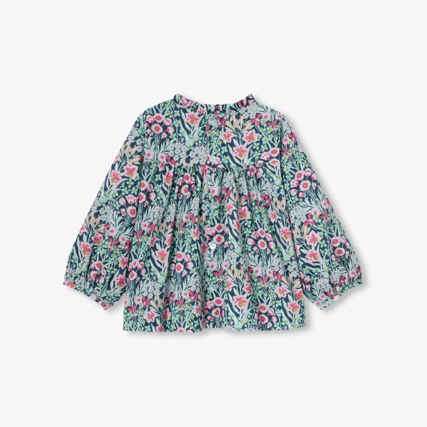 Tissu Liberty foisonnant, col travaillé et découpe suspendue à fronces subliment cette blouse bébé fille. Ode à l'élégance romantique, associez cette pièce au chic travaillé avec un jean et un manteau anglais pour une silhouette pleine de charme.- Blouse bébé en coton- Encolure froncée- Découpe suspendue froncée- Ouverture boutonnée au dos- Tissu Liberty Montain Primerose coloration exclusive Jacadi