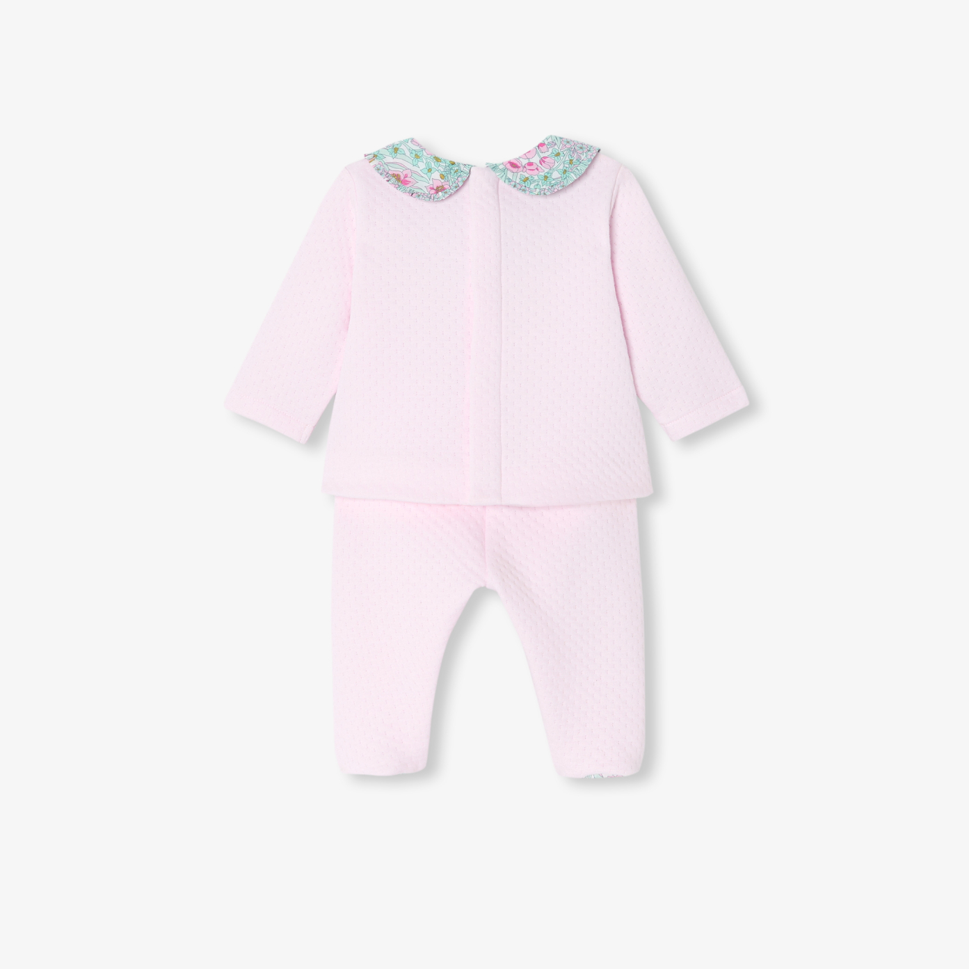 Jacadi réinvente le chic décontracté avec cet ensemble confort bébé fille. Composé d'un haut s'ouvrant au dos et d'un pantalon à pieds en double jersey, col Claudine volanté et dessous de pieds en tissu Liberty ponctuent ce duo poétique. Parfait pour le quotidien à la crèche et la maison, il a toute sa place dans le vestiaire de bébé.- Ensemble confort bébé fille en double jersey confortable- Coton biologique- Collerette et pieds en tissu Liberty- Ouverture au dos par boutons pressions- Pantalon à pieds et taille élastiquée- Tissu Liberty Mountain Primrose ourcoloration exclusive Jacadi- Jolie idée de cadeau de naissance