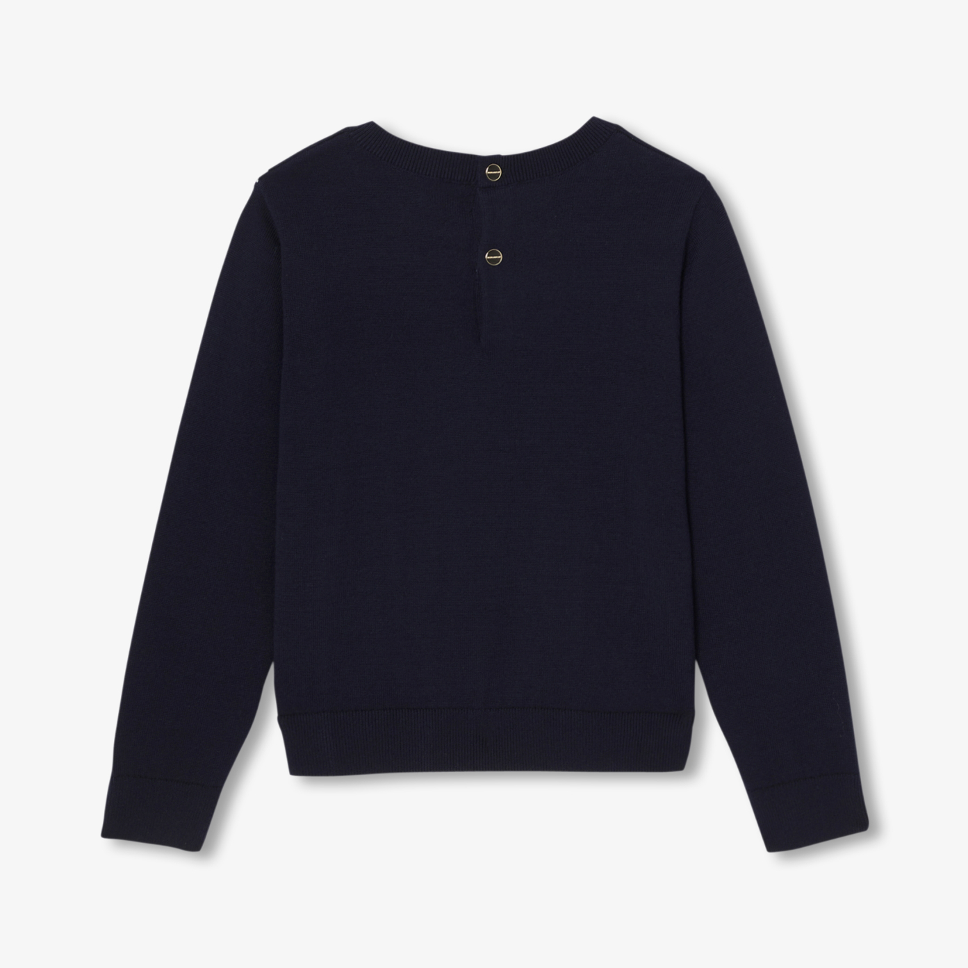 Basique du vestiaire décliné en coton biologique, le pull enfant fille sort son épingle du jeu pour la rentrée. Doux et facile à enfiler grâce à son ouverture au dos, les petites filles ne résisteront pas à son jacquard double-face cœur. Un essentiel qui se mariera facilement à un jean large ou un short pour une silhouette casual chic et parisienne.- Pull en coton biologique- Jacquard double-face cœur devant- Dos uni- Ouverture au dos par pressions