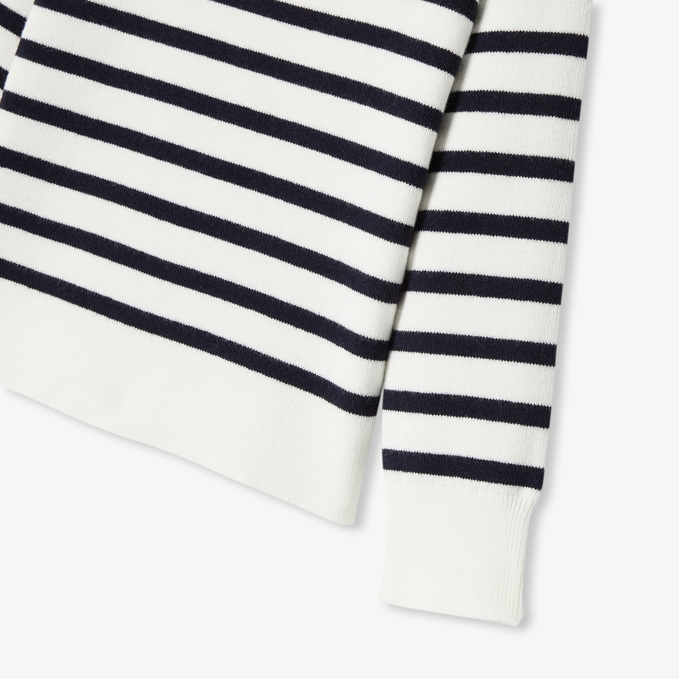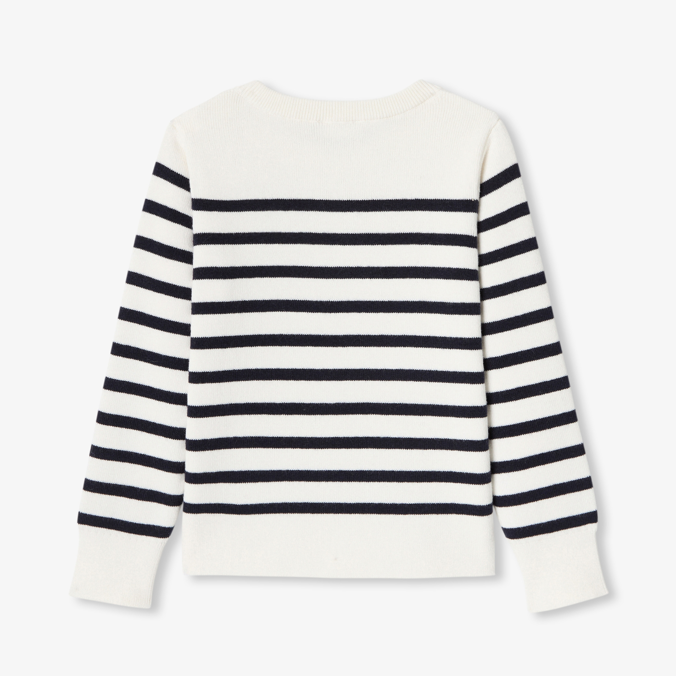 Esprit collège preppy, le pull enfant fille est décliné en coton biologique et laine pour l'automne. Rayé et facile à enfiler grâce ses pressions à l'épaule, il est modernisé par un badge J et fleur brodé. Porté avec un jean large et une doudoune en vichy pour un look mix and match, il a tout pour plaire.- Pull en coton biologique et laine- Rayures bleu marine- Patte pressionnée à l'épaule- Badge J et fleur sur poitrine