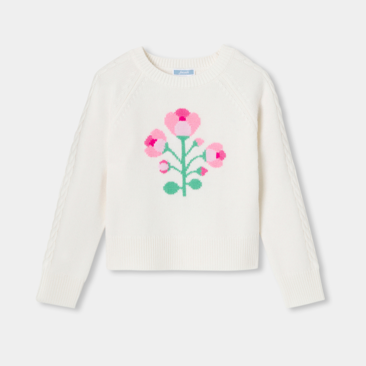 Indispensable du vestiaire d'hiver, le pull enfant fille transporte dans un univers cosy et romantique. En laine douce et couvrante, il est sublimé d'un ravissant bouquet de fleurs en intarsia esprit art nouveau et de torsades sur les manches. Coup de cœur de la saison à porter avec un short à chevrons ou un pantalon en velours, il apportera une touche chic à toutes les tenues.- Pull enfant fille en laine- Manches raglan- Intarsia bouquet de fleurs- Torsades sur manches- Ouverture boutonnée au dos