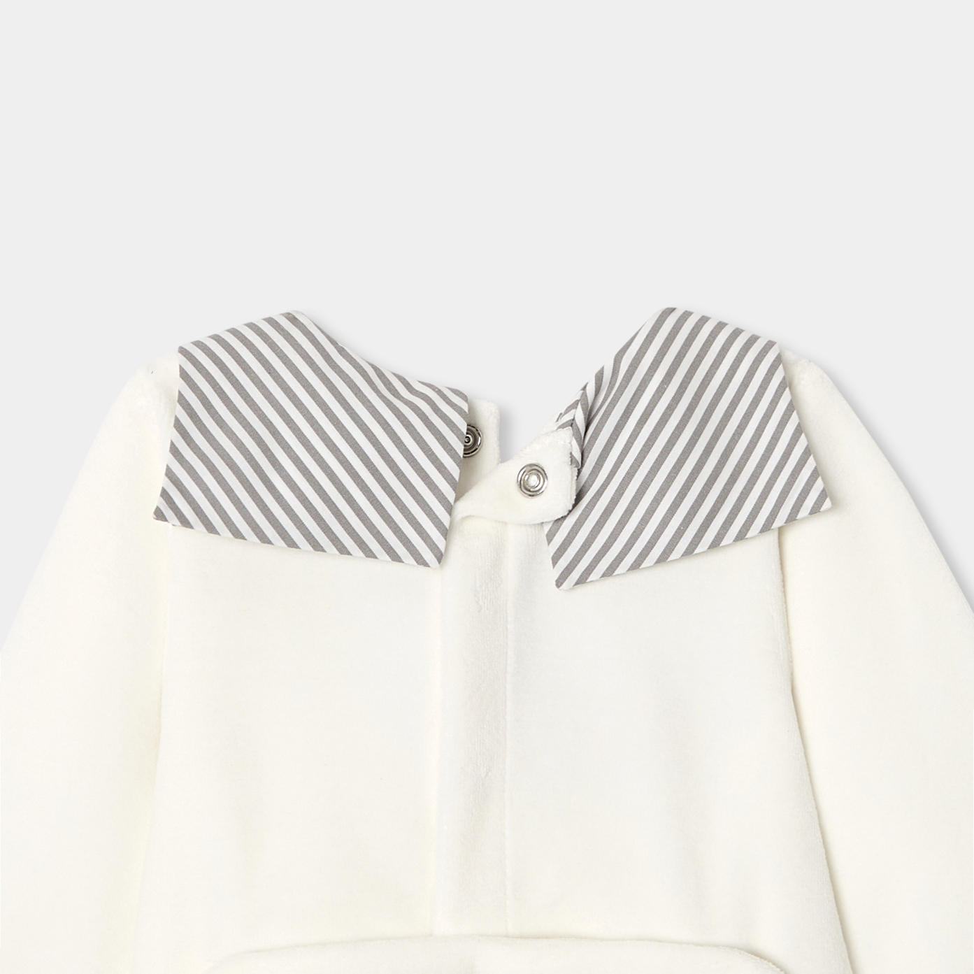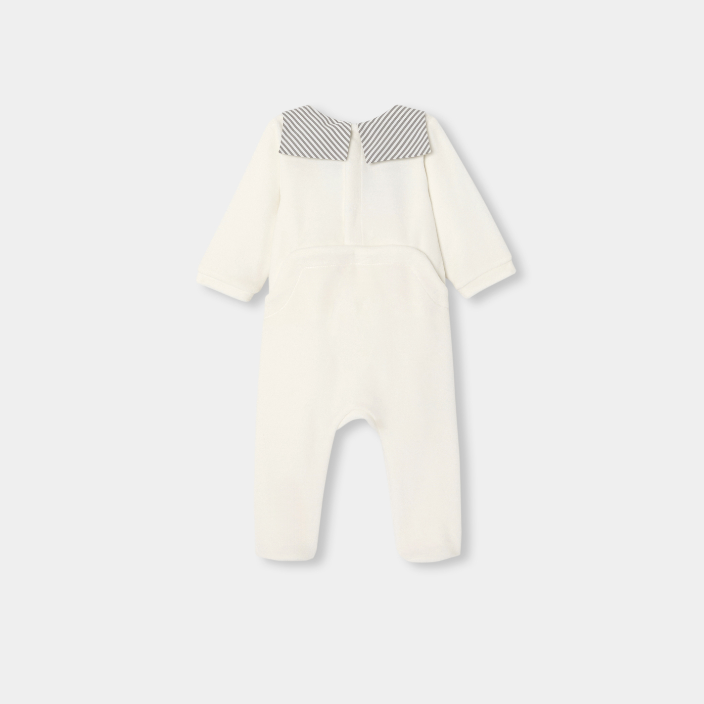 Emblématique du vestiaire Jacadi, ce dors-bien bébé est sublimé d'un col en popeline rayée et de petites pressions décoratives. Confectionné en velours tout doux et très souple, bébé s'endormira calmement dans le confort de ce pyjama. À offrir et à transmettre, glissé dans la valise de maternité et son premier trousseau, voici une belle idée de cadeau de naissance.- Pyjama bébé en velours- Col marin en popeline de coton rayée à pressions décoratives- Ouverture pressionnée invisibles au dos- Idéal pour composer la valise de maternité