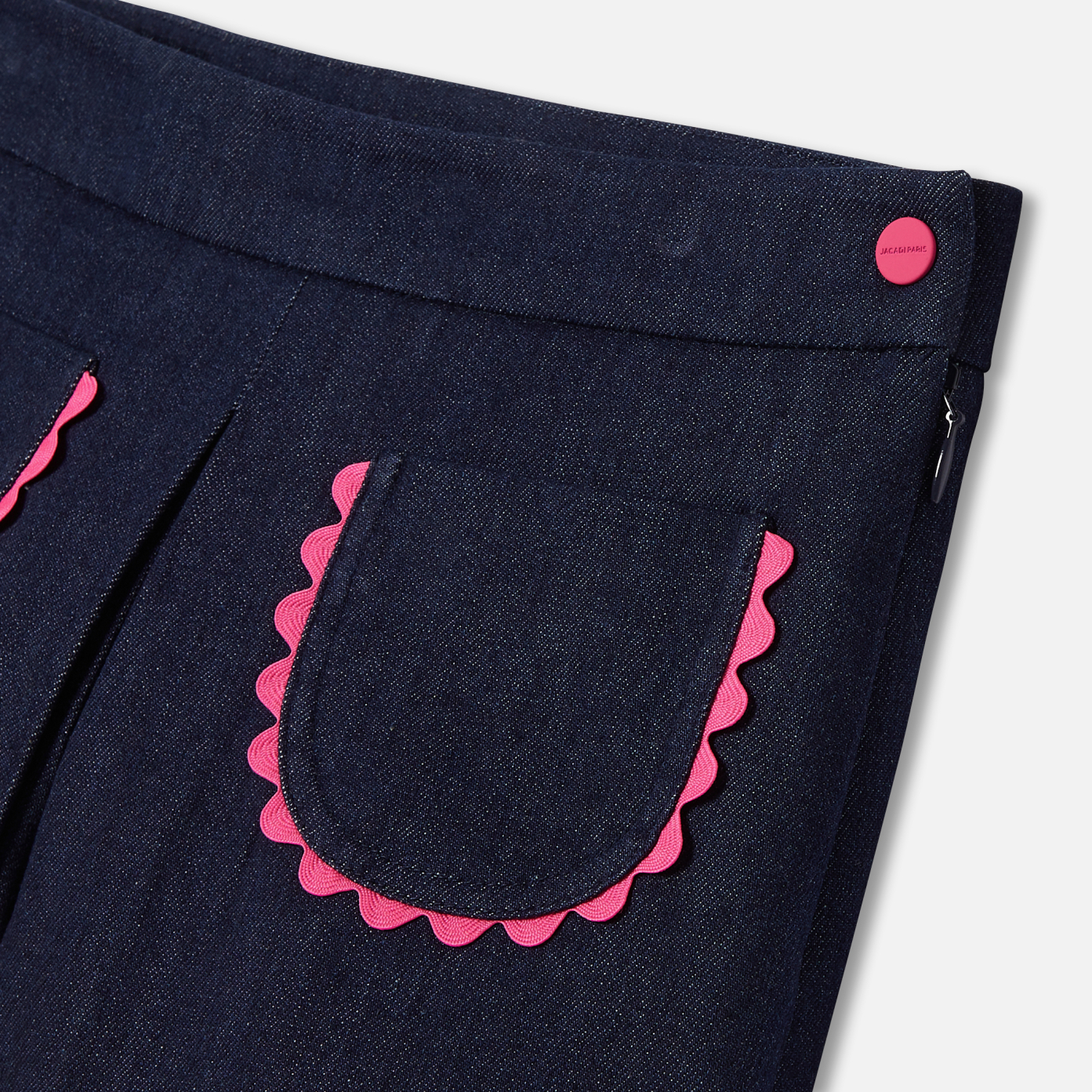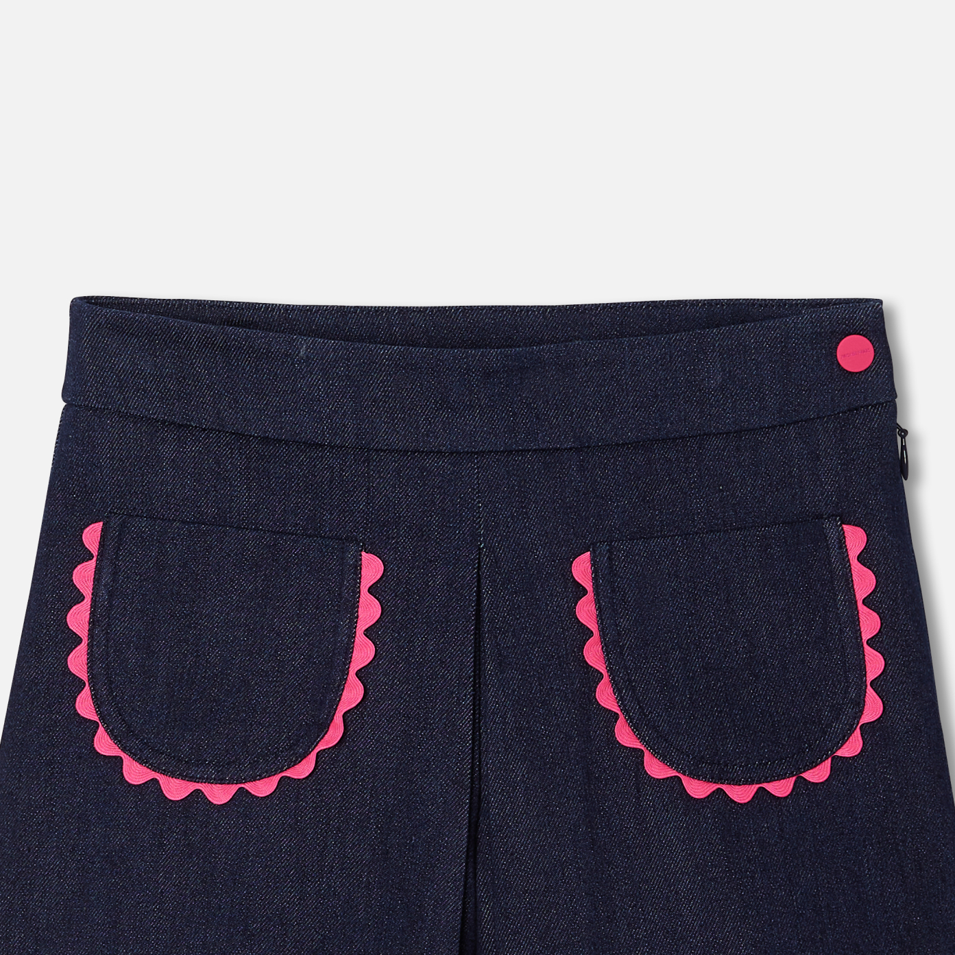 Coup de cœur de la saison, la jupe-short enfant fille adopte un total look jean pour une silhouette marin chic très contemporaine. Accessoirisé de poches à ruban croquet, ce modèle prêt à porter avec une blouse en vichy ou une marinière sera sur le pont dès la rentrée.- Jupe-short en jean brut- Coton biologique- Poches plaquées à ruban croquet - Ouverture par zip invisible sur le côté - Taille ajustable de l'intérieur par élastique