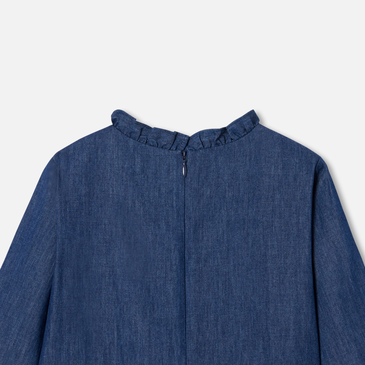Saison après saison Jacadi signe d’irrésistibles pièces au charme romantique comme cette robe enfant fille. Intemporel du vestiaire revisité en toile de jean souple pour une silhouette contemporaine, volants à l'encolure et bas de manches et ruban croquet rose apportent une touche graphique à ce modèle parfait pour la rentrée.- Robe en jean léger enfant fille- Manches longues- Col et bas de manches volantés- Patte de boutonnage trompe-l'oeil- Ruban croquet rose- Doublure- Ouverture par zip invisible au dos