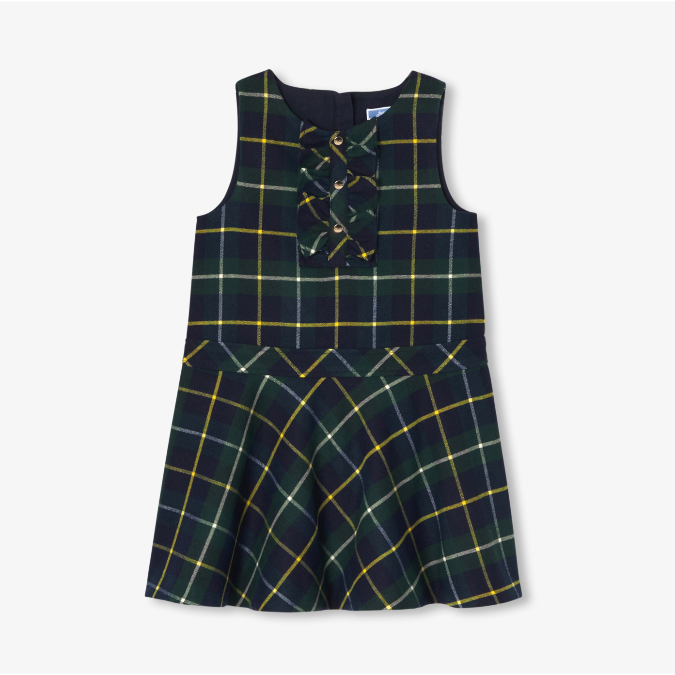 Preppy chic et audacieuse, cette saison la robe chasuble enfant fille joue la carte du tartan graphique. En flanelle douce doublée en coton, elle est modernisée d'une patte jabot volantée et des pressions dorées esprit uniforme d’écolière. Portée avec un t-shirt et un cardigan en laine pour la rentrée, elle traversera l'automne avec allure.- Robe chasuble en flanelle- Motif tartan- Jabot à l'encolure- Ouverture pressionnée à l'épaule- Doublure en coton