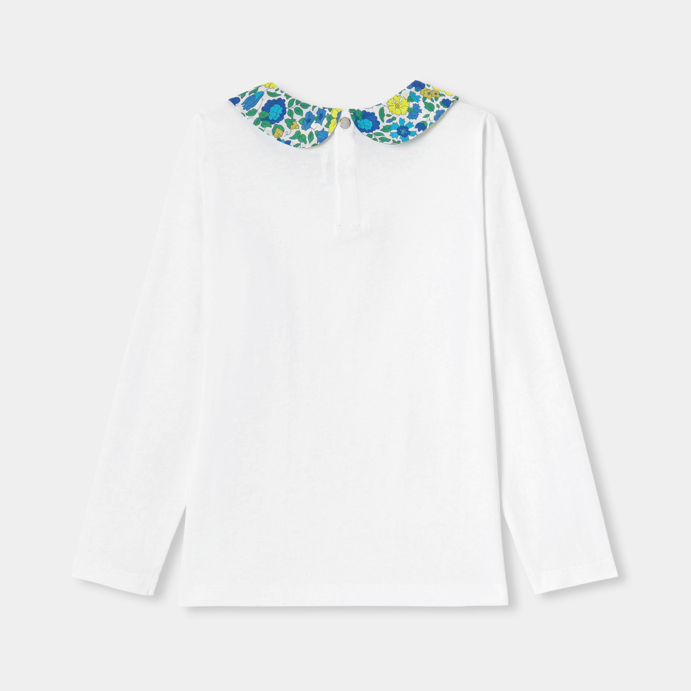Basique du vestiaire décliné en coton biologique, le t-shirt enfant fille s'habille d'un col en tissu Liberty pour la rentrée. Porté avec une jupe en velours ou sous une veste en jean, il plaît pour son élégance et sa polyvalence.- T-shirt enfant fille en coton biologique- Manches longues- Ouverture pressionnée au dos- Col en tissu Liberty Theresa Petals coloration exclusive Jacadi