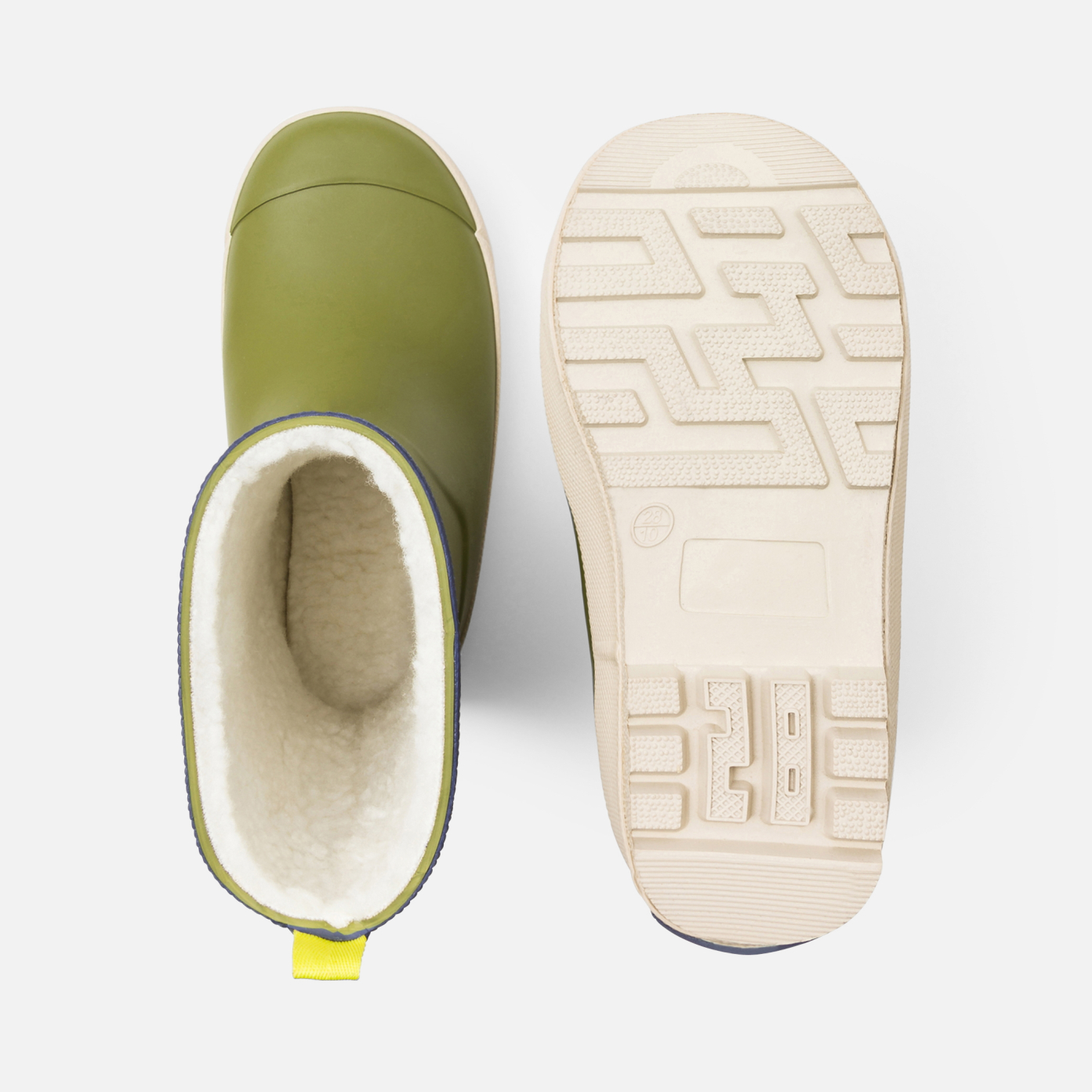 For an outing in the woods and perfect for rainy weather, these boy wellies adopt a contemporary look with their thick contrasting sole and khaki colour. Perfect for puddle-walking in wet weather, give your boy these wardrobe essentials. - Rubber - Textile lining- Non-slip sole - Boot puller for easy slip-on fitting - This model has a wide fit.