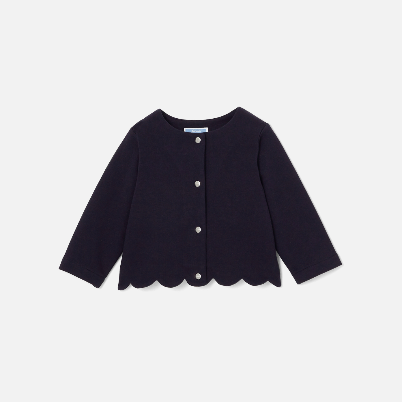 This season, our stylists updated the classic toddler girl cardigan with a graphic, refined cut. Made from soft and comfortable fleece with a pretty, scalloped hem, it's easy to slip on thanks to the snap button opening. Layer it over a dress or twill shorts to keep her warm during your strolls in the park. - Organic cotton - Snap button closure - Brushed fleece interior - Scalloped hem