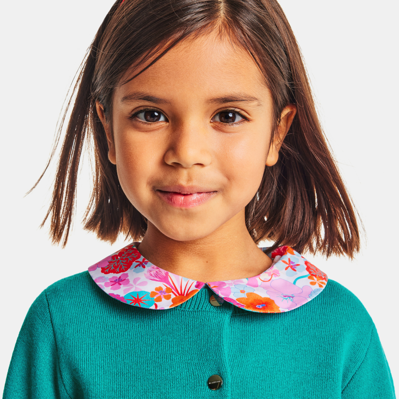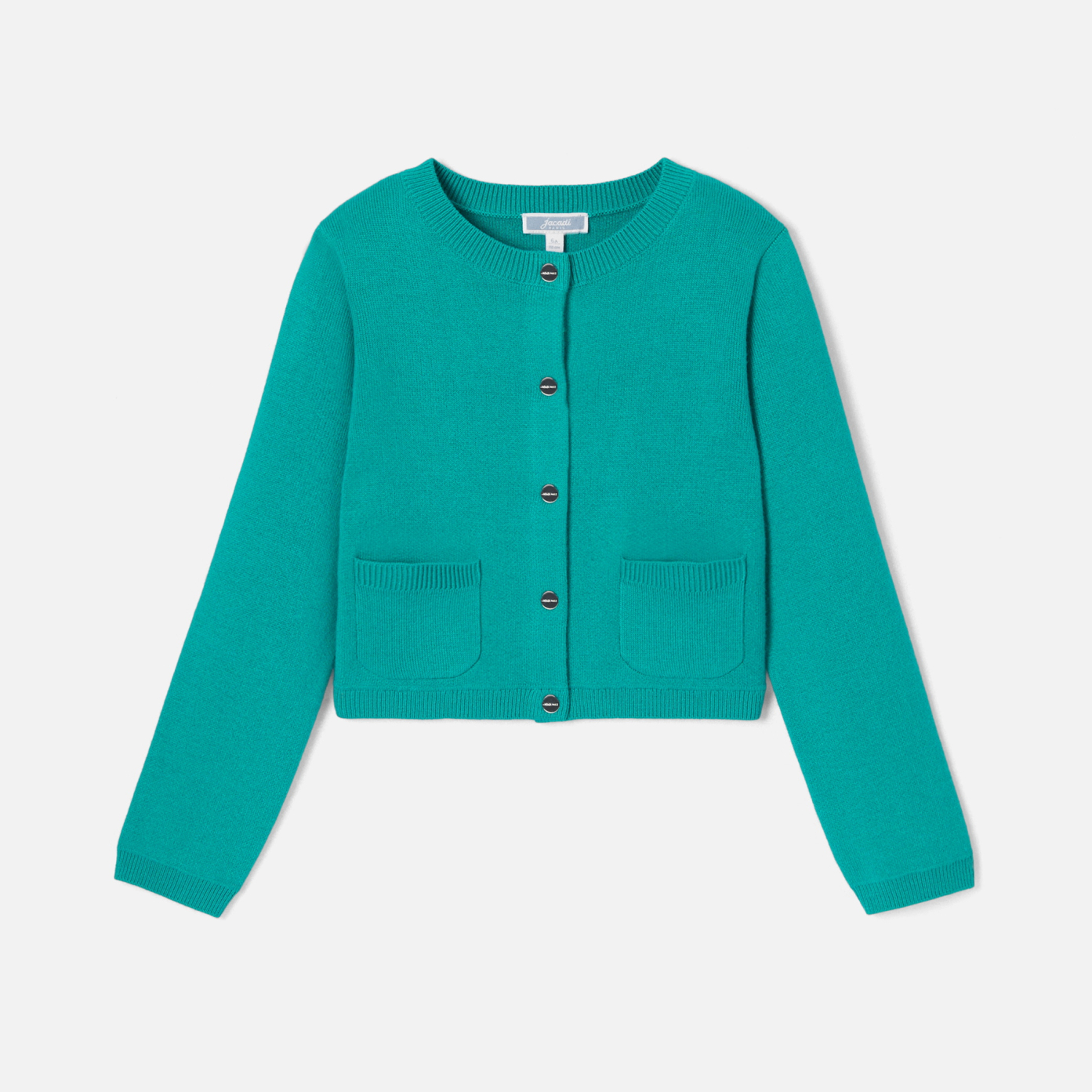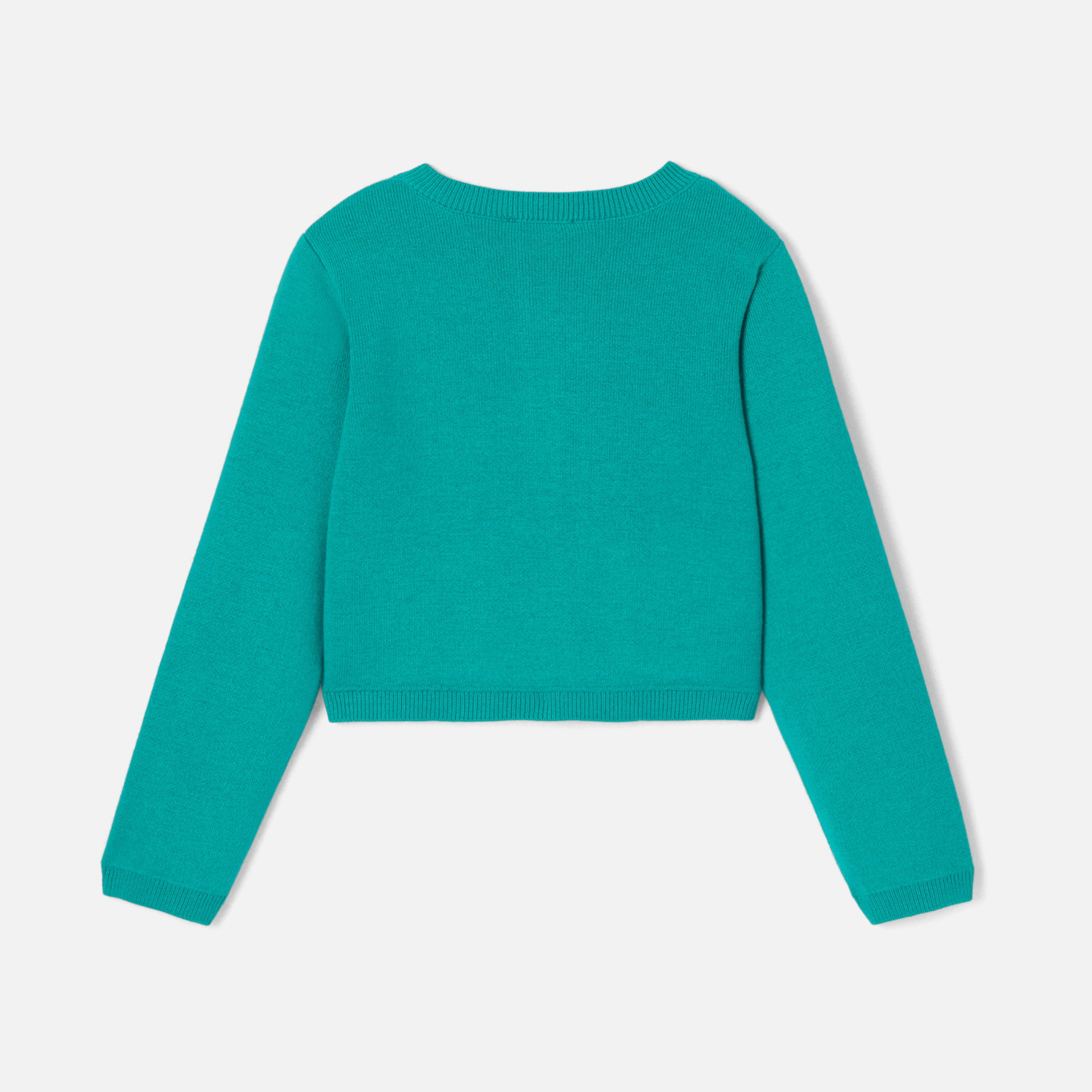 Imagined as a jacket, this girl cardigan will elegantly finalise her spring outfits. Accessorised with patch pockets and snap fastenings, your daughter will want it in every colour.