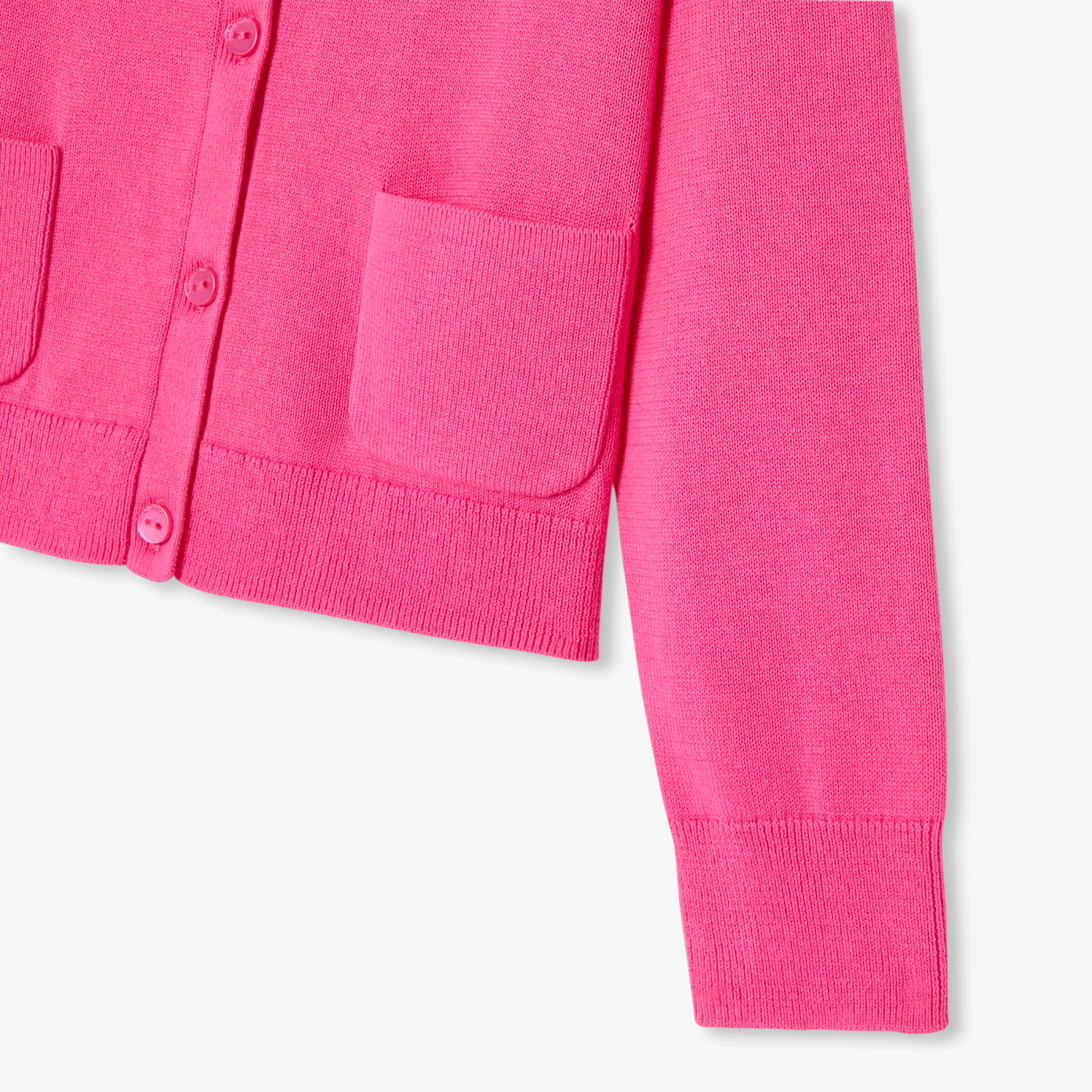 This vibrant colour girl cardigan is an elegant finishing touch to any spring outfit. Worn over a dress, or with a t-shirt and a floral skort for a 60's look, it's sure to complement any outfit.- Jersey cardigan- Rounded patch pockets- Natural mother-of-pearl button closure.